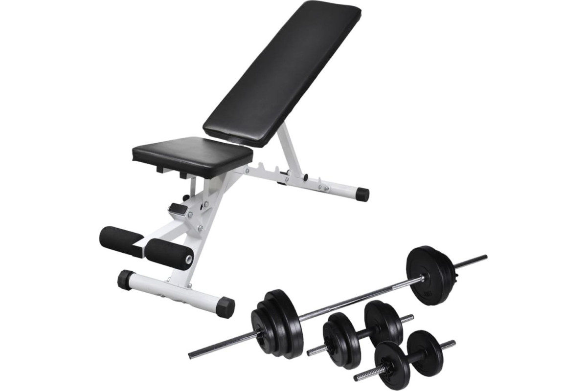 Тренажерна лава зі стійкою, штангою та гантелями, 30,5 кг vidaXL
