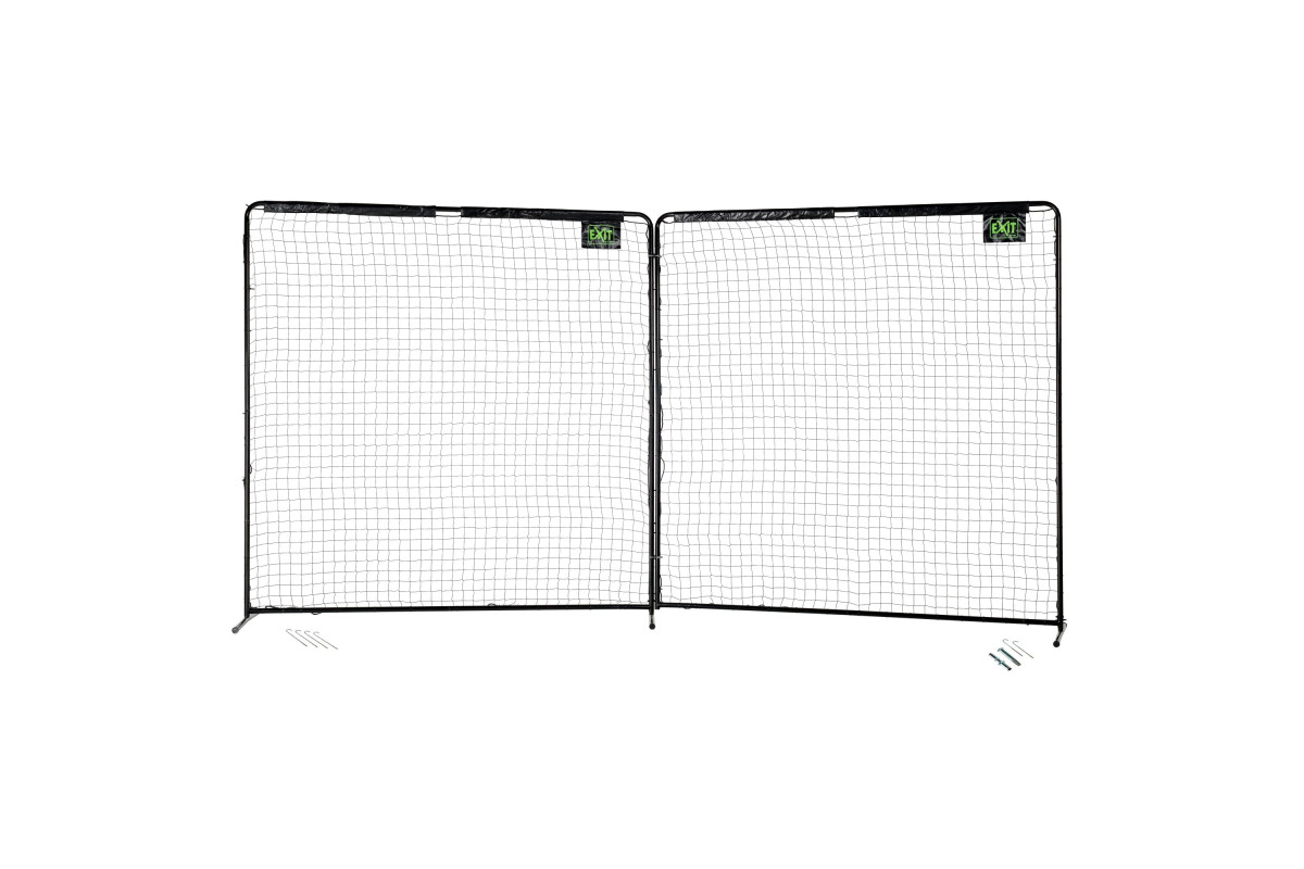 - Захисна сітка Exit Backstop net 600 має висоту 300 см та довжину 600 см. Складається з 2-х з'єднаних між собою частин розмірами 300х300 см, які можна встановити під будь-яким кутом. Розмір кута регулюється, що забезпечує максимальну стійкість та дозволяє підігнати виріб під ігрове поле.