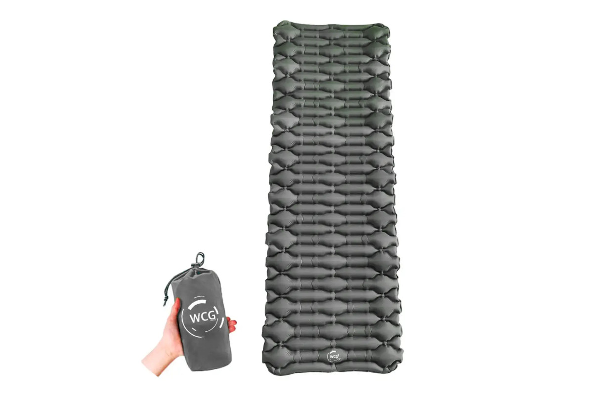 Великий надувний каримат похідний, туристичний WCG для кемпінгу (сірий) Ідеально підходить для похідного спального килимка, не турбуючись про місце в рюкзаку. Немає болю в спині через велику вагу, дуже зручно носити з собою. Туристичні надувні матраци створені з сучасних, міцних матеріалів, що дозволяє використовувати їх практично на будь-якій поверхні. Мають відмінні водовідштовхувальні і термоізоляційні властивості. Ідеально підходять для походів, відпочинку і плавання в басейні.