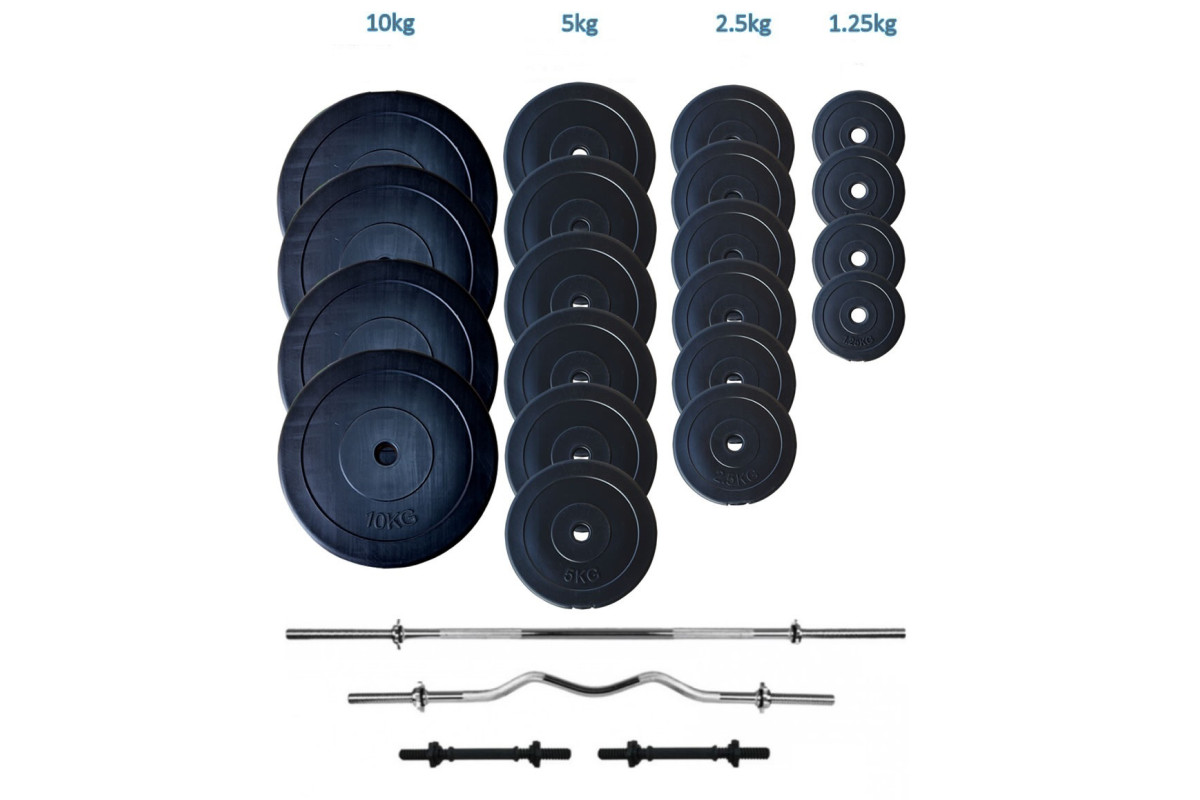 Штанга + Гантелі Набір Premium 107 КГ Представляємо набір навантажень (Штанга + Гантелі) з загальною вагою 107 кг. За допомогою цього набору Ви зможете повноцінно займатися зі штангою і гантелями як і в спортзалі так і в домашніх умовах. Диски підходять до прямого грифу, w-подібного і до гантельних грифів тому набір вважається універсальним. Ви зможете чергувати заняття зі штангою і гантелями, тим самим рівномірно опрацьовувати різні групи м'язів.