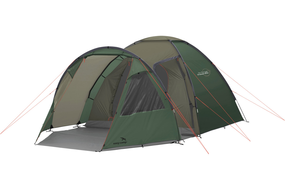 Easy Camp Eclipse 500 Rustic Green (120387) - п'ятимісний купольний намет із тунельним входом для комфортного сну п'ятьох людей. Третя дуга створює місткий тамбур зі знімною підлогою для розміщення похідного інвентарю необхідного для відпочинку на природі. Прозорі вікна наповнюють внутрішній простір світлом. Великі вхідні двері, а також двері збоку забезпечують зручний доступ усередину. Регульовані вентиляційні вікна у передній та верхній частині намету сприяють постійній циркуляції повітря. Внутрішній намет має D-подібні двері для зручного доступу та точку підвісу для ліхтаря. Місткий тамбур і комфортна спальня в поєднанні з компактним розміром сумки-чохла роблять цей намет ідеальним для туристів, що подорожують невеликим автомобілем.