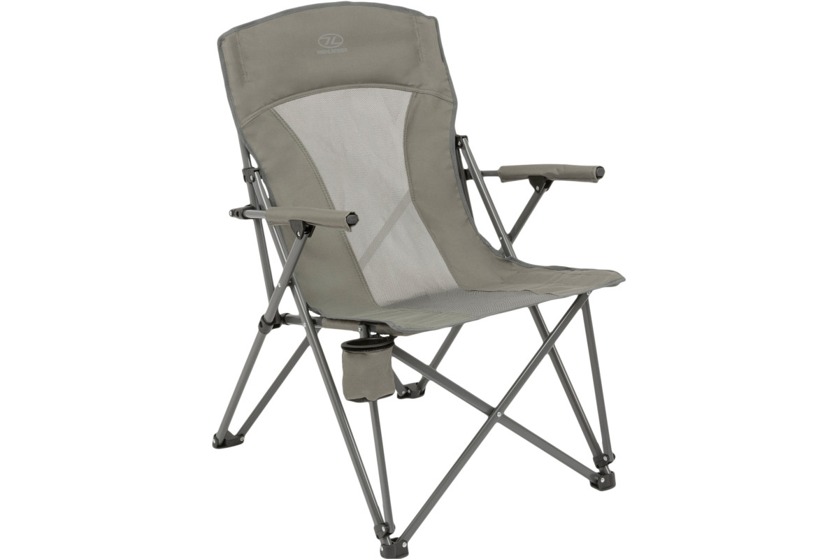 Highlander Doune Chair Charcoal (FUR098-CH) - розкладний кемпінговий стілець середньої висоти зі злегка відкинутою спинкою. Модель ідеально підходить для розслабленої обстановки в родинному колі після тривалого дня. Крісло поставляється з підвісним підстаканником поруч із ніжкою для легкого доступу до прохолодних напоїв.