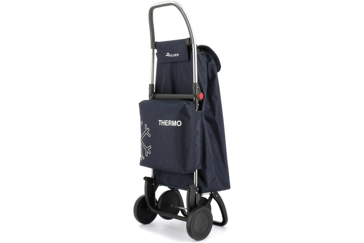 Сумка-візок Rolser I-Max Termo Zen 4L Marino (IMX353-1001) - надійний помічник при поході за продуктами до супермаркету чи на ринок. Особливістю даної моделі є наявність термокишені на чотири літри для заморожених продуктів або охолоджених напоїв. Алюмінієва конструкція візка дозволяє транспортувати вантаж максимальною вагою до 40 кг. Рама 4L має систему для повного складання, а також оснащена адаптером для з’єднання з візком супермаркету. Розкладна основа виконана з алюмінію, а опора - з міцного термостійкого пластику. Додаткова пара коліс для зручного використання візка перед собою. Внутрішня частина рукоятки має пластикове покриття для комфортного транспортування сумки-візка в холодну пору року. Міцний поліестеровий матеріал сумки захистить вміст від дощу та снігу. Знімна сумка, має зручну широку горловину, яка стягується шнуром з фіксатором. Верх сумки накритий захисним клапаном. На дні сумки передбачене вставне дно із пластику.
