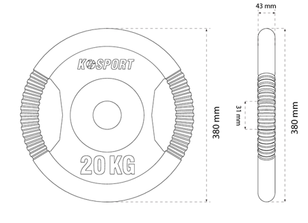 Перфоровані ручки з обох сторін полегшують перенесення диска. Крім того, навантаження розроблено для використання як гирі. Тепер ви можете виконувати присідання, махи та вправи практично для кожної частини тіла з вагою K-SPORT.