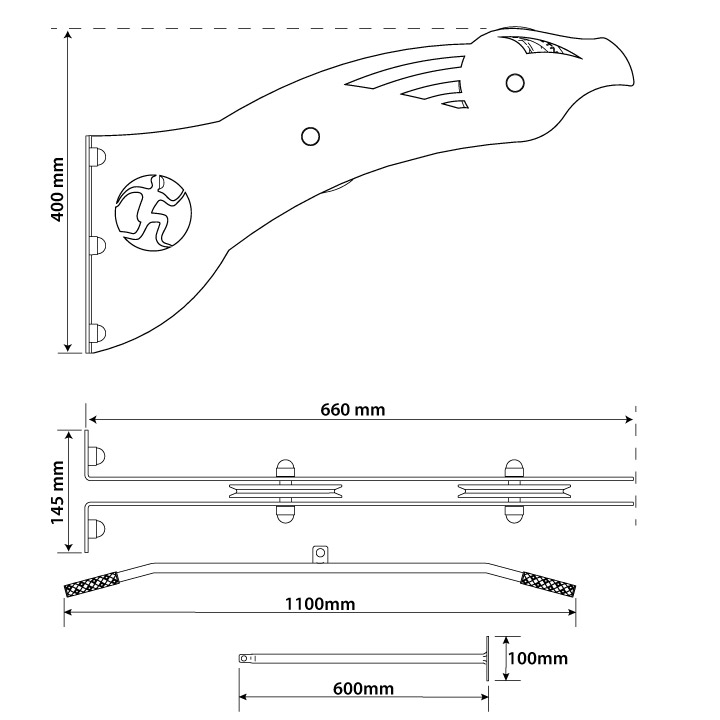 Вантажна планка універсального діаметру дозволяє одночасно використовувати різні види обважнювачів. Карабін дозволяє швидко дістатися або повісити будь-який предмет.