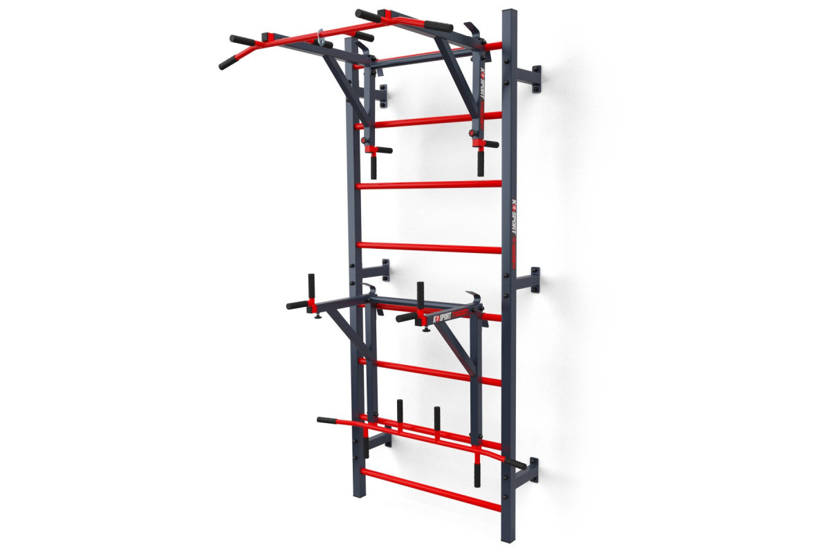Драбина кріпиться на цілих дванадцяти розпірних штирях, тому легко витримує навіть інтенсивні тренування.