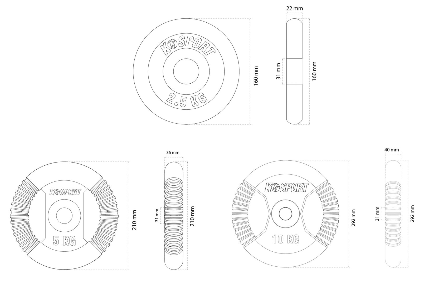Встановлення вантажу полегшено завдяки спеціально розробленій системі. Перфоровані ручки з обох сторін полегшують перенесення ваги. Крім того, навантаження розроблено для використання як гирі. Тепер ви можете виконувати присідання, махи та вправи практично для кожної частини тіла з вагою K-SPORT.
