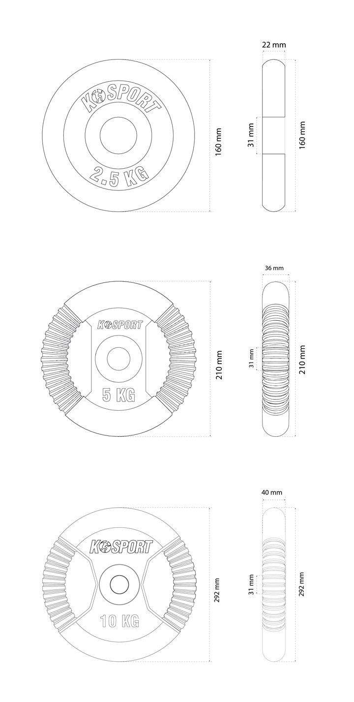 Встановлення вантажу полегшено завдяки спеціально розробленій системі. Перфоровані ручки з обох сторін полегшують перенесення ваги. Крім того, навантаження вагою 5, 10, 20 кг розроблено для використання як гирі. Тепер ви можете виконувати присідання, махи та вправи практично для кожної частини тіла з вагою K-SPORT.