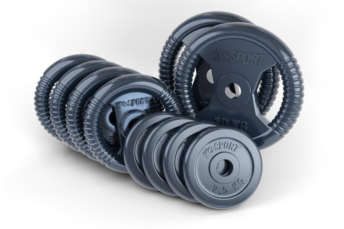 Встановлення вантажу полегшено завдяки спеціально розробленій системі. Перфоровані ручки з обох сторін полегшують перенесення ваги. Крім того, навантаження розроблено для використання як гирі. Тепер ви можете виконувати присідання, махи та вправи практично для кожної частини тіла з вагою K-SPORT.