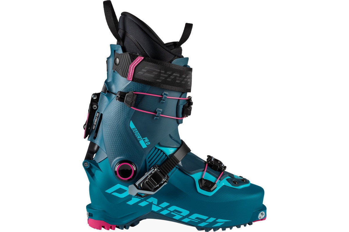 Лижні черевики Dynafit Radical Pro вражають своєю універсальною продуктивністю як під час спуску, так і на підйомі. Вони оснащені революційною системою блокування Hoji Lock, що одним рухом перемикається з режиму катання в режим ходьби, завдяки чому черевики поєднують в собі свободу руху необхідну для сходження та жорсткість для комфортного з'їзду. В режимі ходьби манжета та зовнішний черевик відокремлені, це дозволяє здійснювати ефективний підйом з поворотом манжети на 60 градусів та необмеженою рухливістю ноги. Їх невелика вага та гнучкий язичок, що складається з двох частин з різних технологічних матеріалів гарантує енергозберігаючу природну ходьбу навіть на крутому рельєфі.
