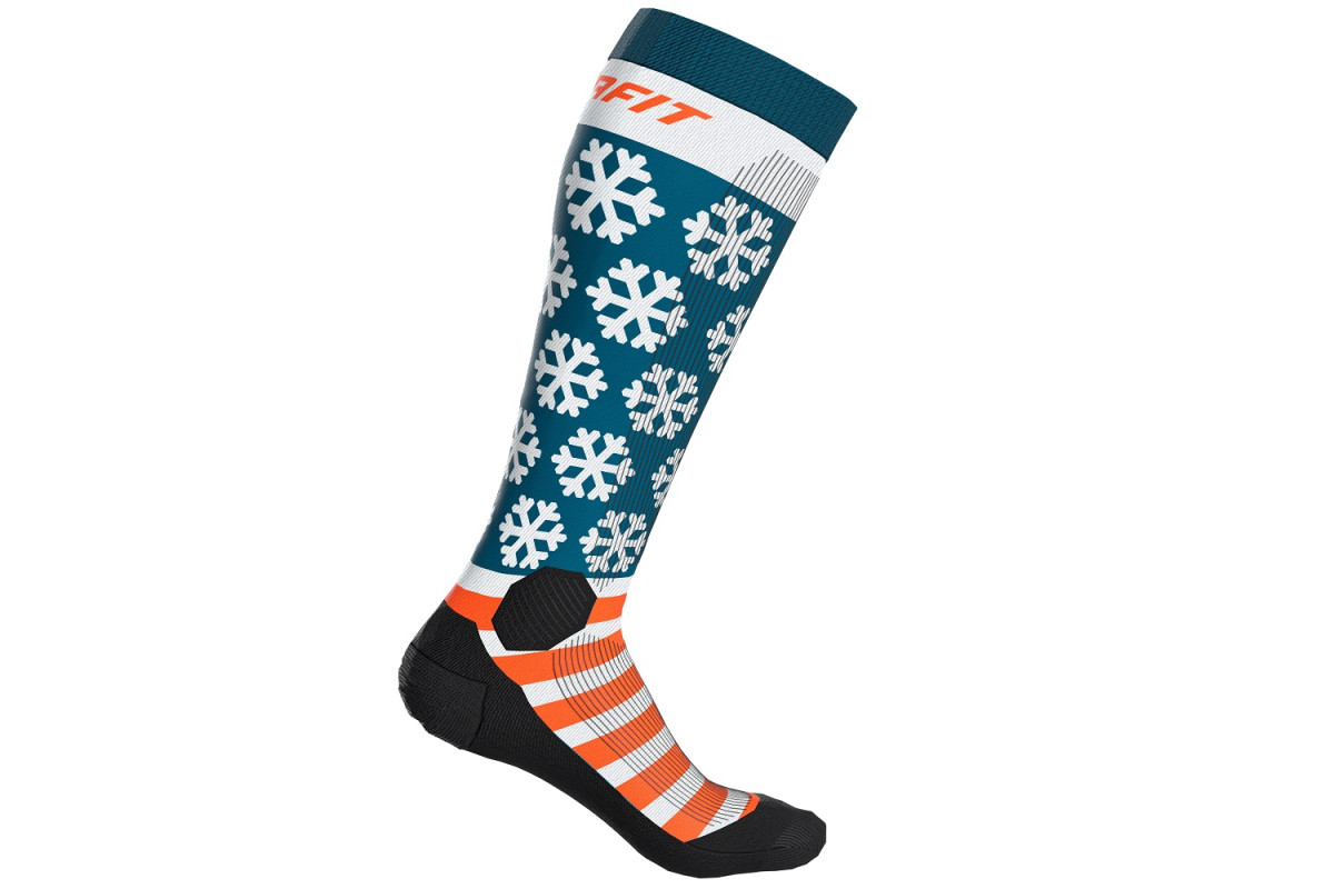 Яскраві легкі шкарпетки Ski Touring від Dynafit. Вони підійдуть і чоловікам, і жінкам. Для гарного захисту на підйомах і спусках у них є середня амортизація в області пальців ніг, п'яти та щиколотки. Шкарпетки швидко сохнуть і зберігають ноги у свіжості протягом більш тривалого періоду.