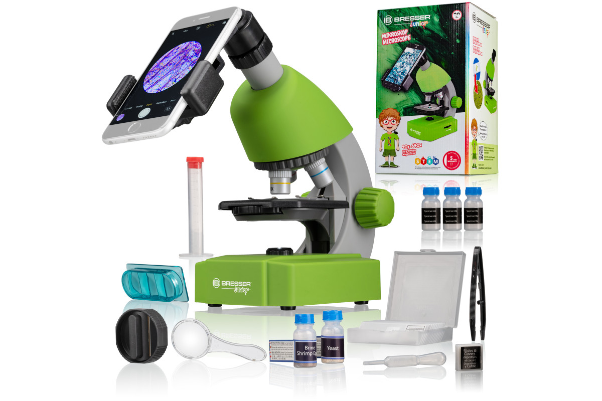Мікроскоп Bresser Junior 40x-640x Green з набором для дослідів і адаптером для смартфона (8851300B4K000)