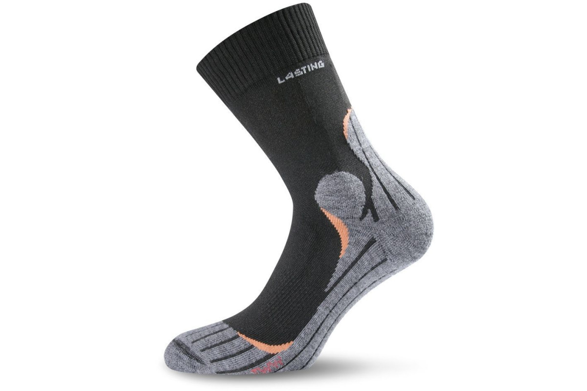 Технологічні трекінгові шкарпетки від бренду Lasting для весни-літа. Виготовлені із штучних волокон, швидко відводять вологу, що важливо під час занять спортом. Lasting TWW антибактеріальні, вони забезпечують відмінне прилягання до ноги і запобігають неприємному сповзанню. Розробники використали тонкий шов типу Россо, який не натирає. Області підвищеного навантаження (стопа, носок і п`ята) посилені подвійним шаром матеріалу для кращої зносостійкості шкарпеток.
