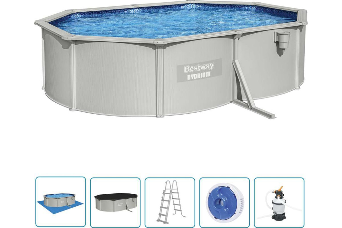 Басейн каркасний овальний Bestway Hydrium з аксесуарами, 500 x 360 x 120 см, світло-сірий