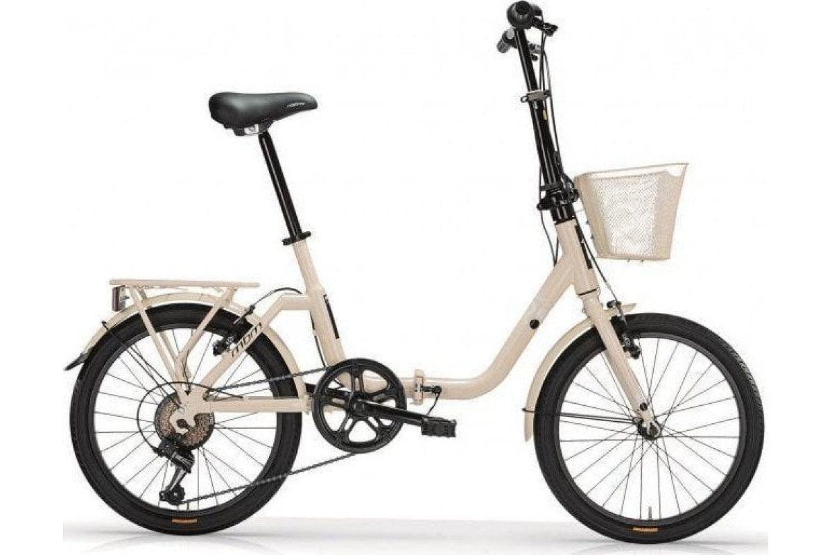 Складаний велосипед MBM Kangaroo Шукаєте складаний велосипед з шестернями? Тоді цей складаний велосипед Kangaroo для вас. Завдяки шести передачам цей велосипед можна використовувати для поїздок на середні відстані. KangarooЦей велосипед не тільки довговічний і надзвичайно міцний, але й чудово виглядає. Завдяки зручному кошику на передній частині велосипеда ви можете легко взяти з собою речі Загальні характеристики: Колір: кремовий Стать: унісекс Матеріал рами: сталь Матеріал обода: алюміній Розмір коліс: 20 дюймів Розмір рами: 35 см Опора керма: регульована по висоті Пружинний підсідельний штир: немає Підвіска передньої вилки: немає Максимальна вага: 100 кг Розміри в складеному стані: 84 x 31 x 71 см (Д x Ш x Г) Вага: 15 кг Специфікація передач: Передачі: 6 (Shimano Revoshift) Тип перемикання передач: перемикач Гальма: Переднє гальмо: V-brake Тип заднього гальма: V-brake Технічні аксесуари: Підставка для велосипеда: одинарна Кошик для велосипеда: так