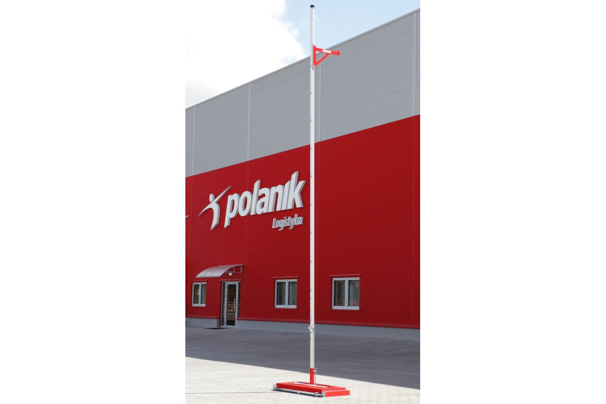 Тренувальна стійка, від 150 см до 600 см, дуже широкий діапазон регулювання висоти, виготовлений з дуже міцних, високоякісних матеріалів: анодованого алюмінію, оцинкованої сталі та сталі, пофарбованої порошковим способом, зручний кривошипний механізм регулювання висоти з гальмом, механізм горизонтального зсуву на основі пластикових напрямних роликів забезпечує легке управління і діапазон регулювання від лінії "0" до 80 см за коробкою, основа оснащена колесами для зручності транспортування, зареєстрований дизайн