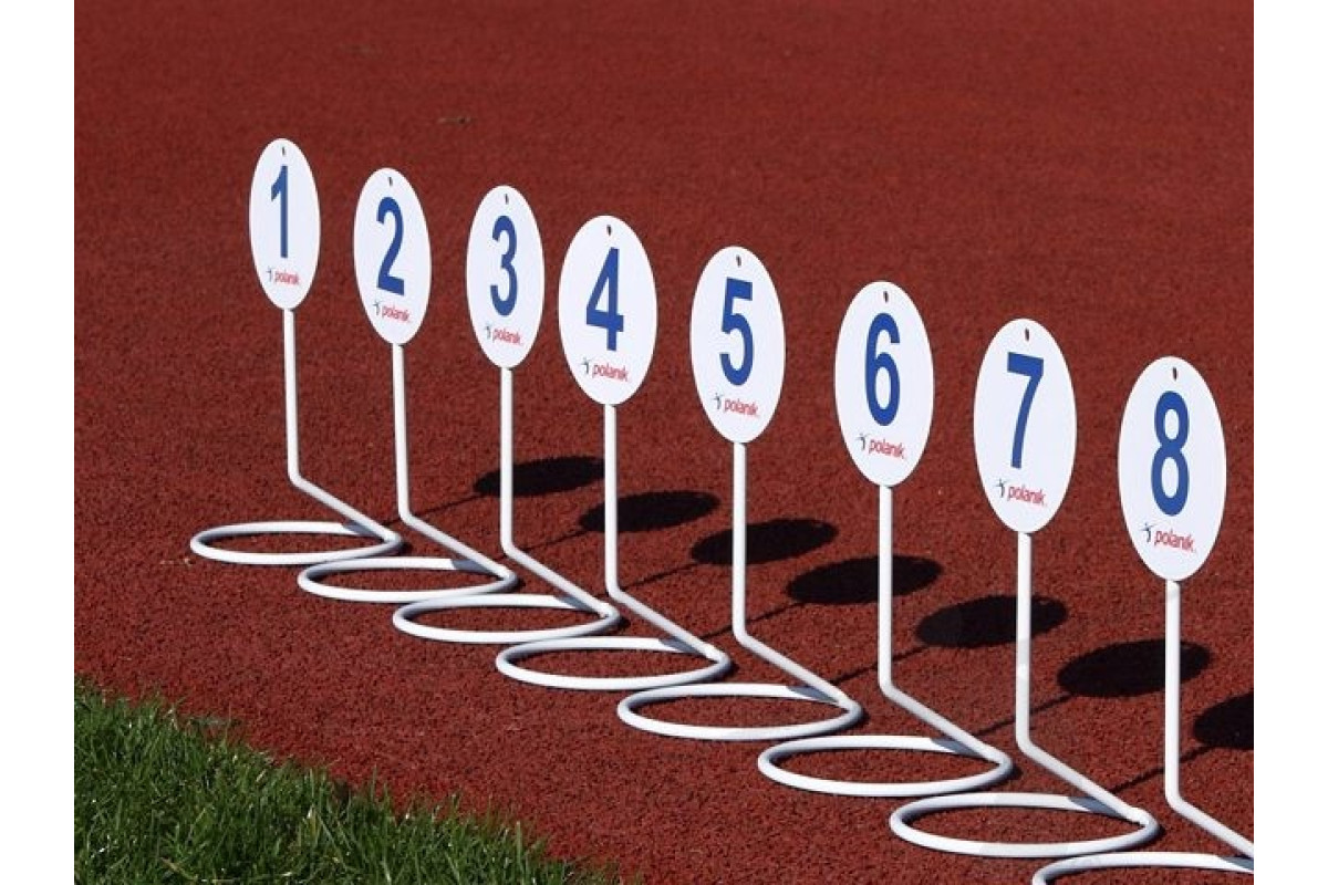 Набір з 15 маркерів для нанесення на землю, виготовлені зі сталі, пофарбовані порошковою фарбою, видимі цифри темно-синього кольору