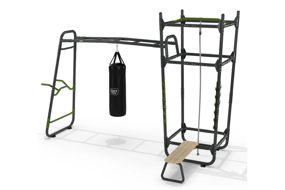 Exit GetSet MB510 (кросфіт станція) - інноваційна розробка від Exit Toys Нідерланди. Це вуличний багатофункціональний фітнес станція для занять кросфітом дорослими та дітьми. Модерновий дизайн, компактний формат, неперевершена якість, унікальний товар на ринку України. Виконаний з оцинкуванням сталі з порошковим покриттям, що гарантує тривалий термін служби. Металеві труби сполучені пластиковими елементами, завдяки чому відсутні скрипучі звуки від тертя металу об метал. Усі дерев'яні деталі зроблені з деревини кедра. Товар упакований в декілька коробок, що полегшує його транспортування і складання. Ви самостійно можете додати потрібні аксесуари. Він багатофункціональний, підійде для заняття спортом і розваг дорослим і дітям. Компактні розміри, підходить для будь-якої ділянки. Легко зібрати самостійно, скориставшись інструкцією. Виробництво Нідерланди.