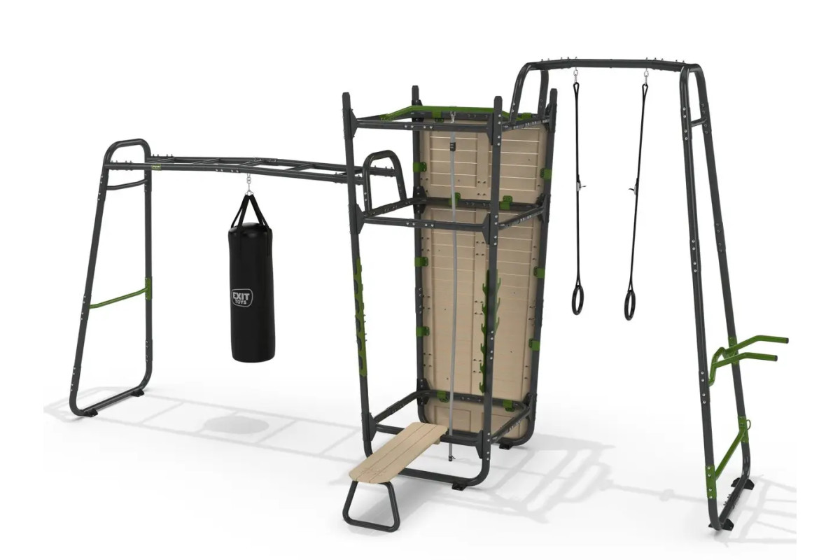Exit GetSet MB620 (кросфіт станція) - інноваційна розробка від Exit Toys Нідерланди. Це вулична багатофункціональна фітнес станція для занять кросфітом дорослими та дітьми. Модерновий дизайн, компактний формат, неперевершена якість, унікальний товар на ринку України. Виконаний з оцинкуванням сталі з порошковим покриттям, що гарантує тривалий термін служби. Металеві труби сполучені пластиковими елементами, завдяки чому відсутні скрипучі звуки від тертя металу об метал. Усі дерев'яні деталі зроблені з деревини кедра. Товар упакований в декілька коробок, що полегшує його транспортування і складання. Ви самостійно можете додати потрібні аксесуари. Він багатофункціональний, підійде для заняття спортом і розваг дорослим і дітям. Компактні розміри, підходить для будь-якої ділянки. Легко зібрати самостійно, скориставшись інструкцією. Виробництво Нідерланди.