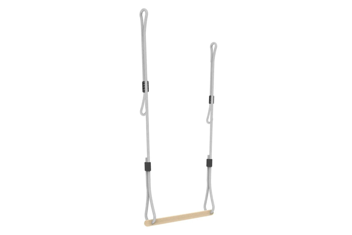 Трапеція Exit GetSet (для MB200, MB300) З цією дерев'яною трапецією ваша дитина зможе виконати всілякі акробатичні вправи, тренуючись на власному спортивно-ігровому майданчику. Трапеція виготовлена з масиву листяних порід дерев. У комплекті система для кріплення, завдяки якій ви можете повісити трапецію легко і швидко. Мотузки м'які і зручні, ви можете самі регулювати їх висоту.