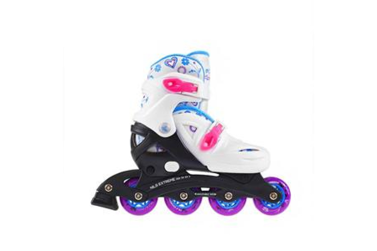 NJ0321 A Nils Extreme - серія роликових ковзанів, призначених для дітей та підлітків. Виріб поєднує в собі яскравий дизайн та високу якість виготовлення. Модель NJ0321 A Nils Extreme оснащена триступеневим регулюванням розміру черевика, що дозволяє підлаштувати його під ваші потреби. Таке рішення дозволяє їм служити довше, а також дає можливість використовувати їх для більш ніж однієї людини. Матеріал EVA, 3-міліметрова піна та дихаюча мембрана гарантують комфорт під час їзди. Легкий і міцний черевик разом з системою ременів забезпечує максимальну безпеку. За допомогою простої системи регулювання розмір можна легко і швидко адаптувати під ногу користувача. Модель доступна в трьох привабливих колірних варіантах: чорно-лаймовий, білий та рожево-білий.