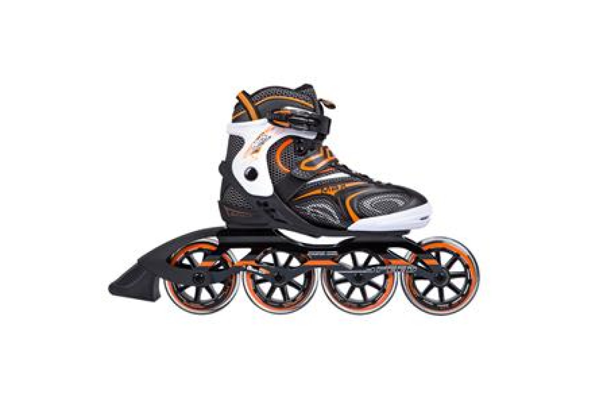 NA1060S від Nils Extreme - це швидкісні ролики. Вони розроблені для забезпечення найкращої маневреності, точності рухів та стабільності при проходженні слаломних трас. Легкий, але міцний черевик, шнурівка, а також ремінець на липучці та пряжка гарантують безпеку, відмінну стабільність та баланс під час катання. Їх конструкція базується на легкому, вентильованому черевику та спеціальних цільних посилених полозах з алюмінію. Якісне зчеплення з дорогою забезпечують підшипники класу ABEC9. М'які колеса гарантують хороше зчеплення з поверхнею та добре поглинають всі вібрації. Великі 100-міліметрові колеса забезпечують дуже швидку їзду..