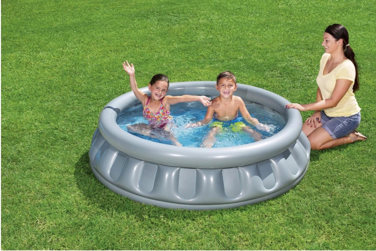 Bestway 51080 – це надувний дитячий басейн у вигляді "Літаючої тарілки", який поєднує стильний вигляд і високоякісні матеріали для забезпечення безпеки дітей під час гри. Легкий у монтажі: просто розгорніть на рівній поверхні і наповніть водою. Ненадувне дно додає стабільності і зручності використання. Стіни виконані з високоякісного вінілового матеріалу, що гарантує довговічність і стійкість до пошкоджень.