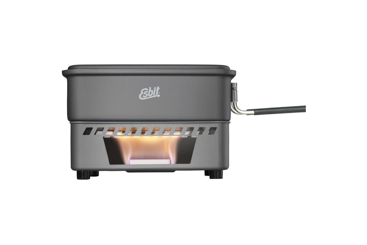 Esbit CS1100HA - легкий, виготовлений із міцного анодованого алюмінію, набір для приготування їжі, що складається з казанка і твердопаливного пальника. Як паливо для нього може використовуватись таблетки Esbit, вагою 27 або 14 г. Казанок має об’єм 1100 мл, чого достатньо для приготування їжі для 2-3 людей. Комплект поставки включає кришку, а також підставку, яку можна зберігати в каструлі для економії місця.