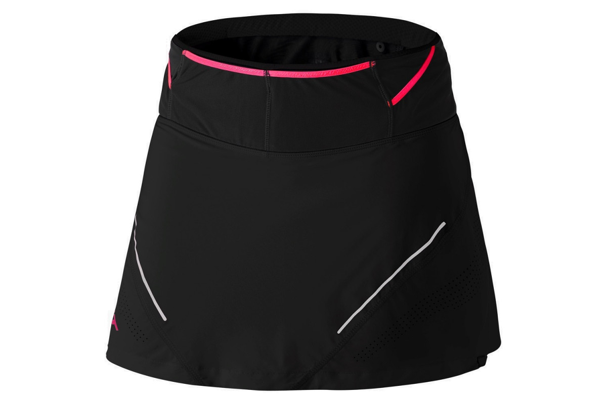 Dynafit Ultra W 2/1 Skirt - надзичайно легка та еластична спідниця. Це річ два в одному (шорти + спідниця) для комфортного бігу і трейлранінгу. Спідниця має інтегрований пояс, куди можна помістити флягу з водою, батончики чи перекуси. Є спеціальна кишеня на блискавці для смартфону і місце для кабеля. Спідниця добре вентилюється і майже не відчувається на тілі.