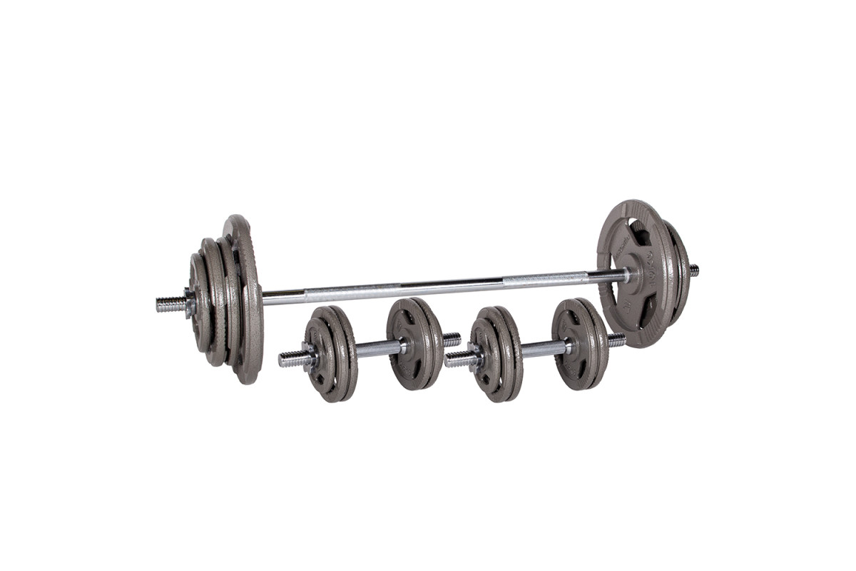 Набір навантажувальних штанг inSPORTline Hamerton 5-80 кг допоможе вам зміцнити всю верхню половину тіла, як за допомогою штанги, так і штанги на одній руці. Ви знайдете одну двосторонню вісь і дві короткі осі, на які ви можете завантажувати включені диски як завгодно. Діаметр древка становить 30 мм , з них дворучний — 120 см , а два одноручні — 40 см .