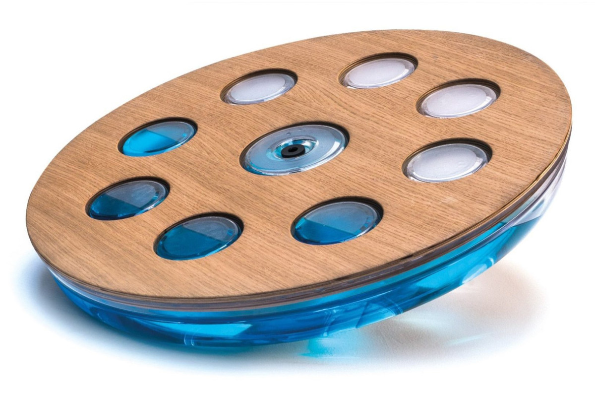 Балансувальна платформа Eau-Me Board виготовлена з високоякісної деревини ясена. Поєднання основи з резервуаром для води з полікарбонату забезпечує ефективне та результативне тренування рівноваги. Завдяки платформі Eau-Me ми покращимо координацію рухів та фізичну форму.