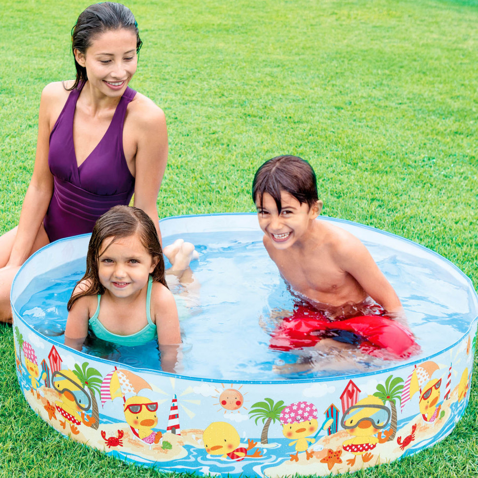 Завдяки невеликим розмірам (діаметр 122 см та висота 25 см), цей басейн не займає багато місця і ідеально підходить для дворів або маленьких садів. Легко розгортається на рівній поверхні, заповнюється водою, і ви готові до веселощів. Крім того, завдяки компактності, вода швидко нагрівається під сонцем, що забезпечує комфорт для дітей.