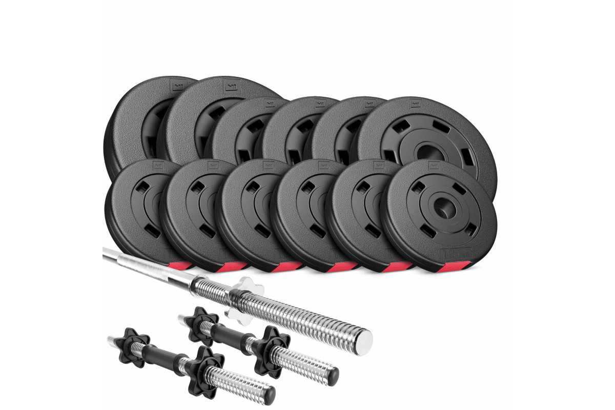 Завдяки ретельно підібраній конфігурації та високоякісним компонентам цей набір оцінять як початківці, так і досвідчені користувачі. Диски для штанги покриті декількома шарами ABS-пластика, щоб при падінні вони не пошкодили підлогу.