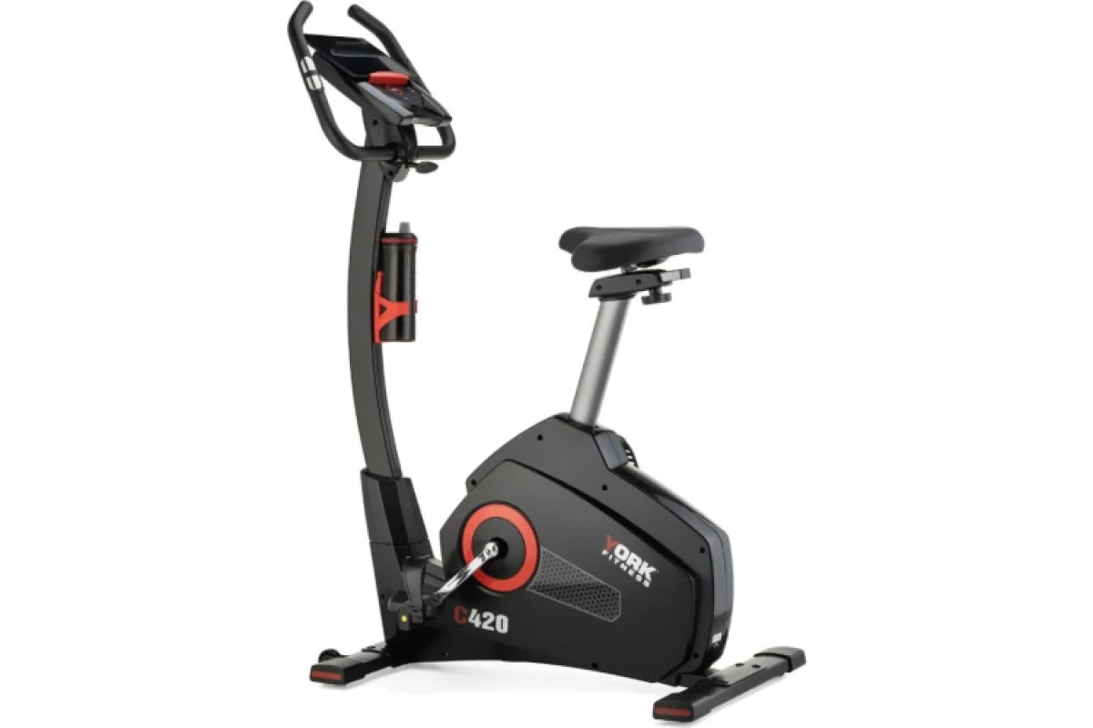 Відкривайте нові горизонти в сфері фітнесу, не покидаючи затишку вашого дому. Здоров'я та гарний настрій - у вас в руках! Від тренувань Ви отримаєте не лише результати, але й відчуття комфорту та задоволення від кожного руху. Вертикальний електромагнітний велотренажер York Fitness C420 - чудово поєднує в собі естетичний зовнішній вигляд, практичність та безпеку. Завдяки 17 програмам, розширеним статистичним показникам тренувань, таким як Body Fat і WATT, великий РК-дисплей і давачі пульсу на рукоятках, надає все необхідне для досягнення ваших фітнес-цілей. Компактні розміри тренажера 105 × 54 × 140см роблять його неймовірно зручним і простим у використанні та характеризується високою якістю виготовлення. Має магнітну гальмівну систему та 32-ступінчастий діапазон регулювання опору. Велотренажер можна легко вирівняти за допомогою ніжок. Завдяки транспортувальним роликам ви зможете швидко перемістити тренажер у будь-яке місце у квартирі. Максимальна вага користувача: 150 кг. Під час тренувань ви зможете дивитися улюблені серіали завдяки тримачу для мобільного пристрою, також велотренажер York C420 оснащений тримачем для пляшки з водою.