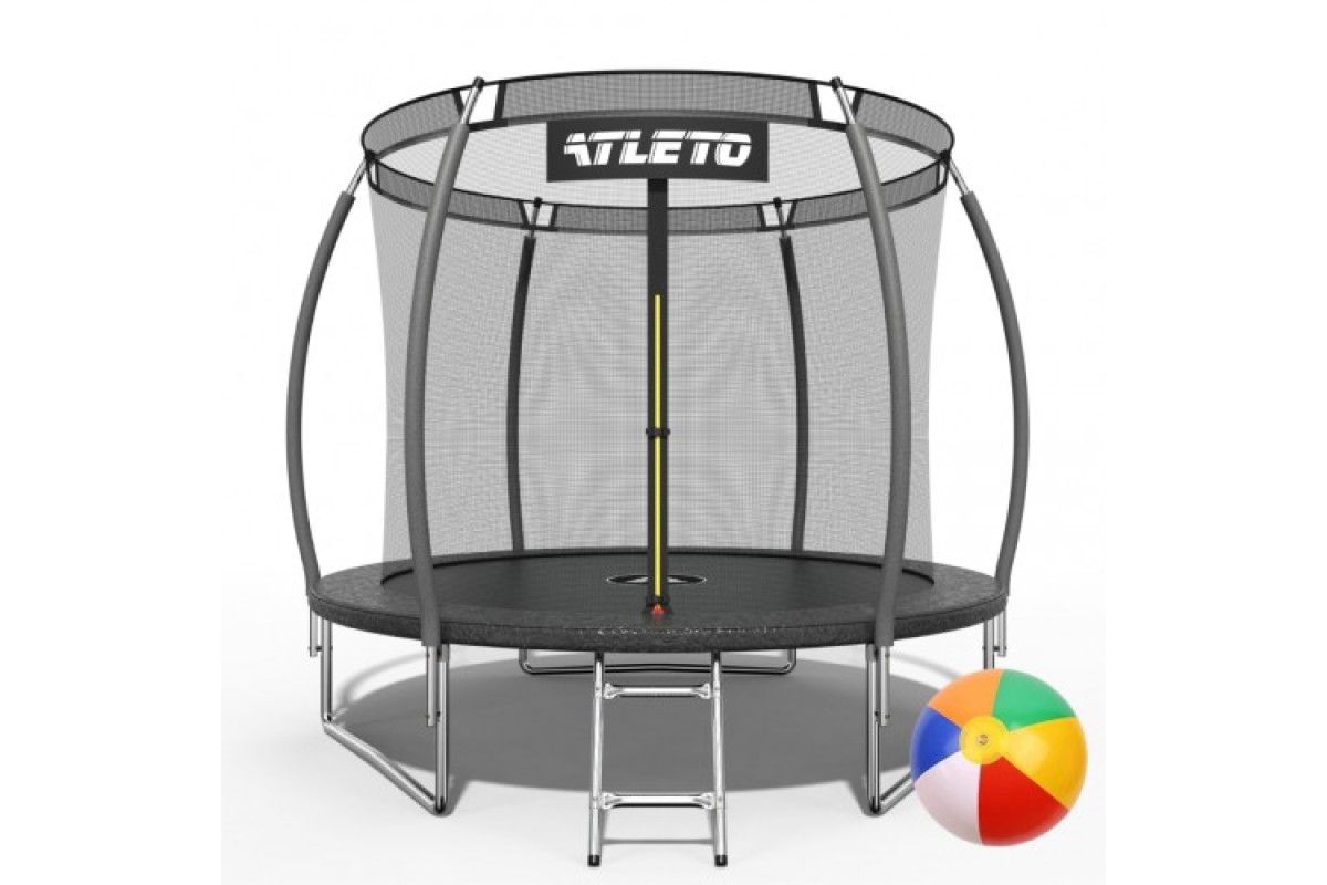 Батут Atleto діаметром 312 см — ідеальне рішення для домашніх тренувань і веселощів на свіжому повітрі. Його компактний розмір підходить навіть для невеликих ділянок, а стильний дизайн додає настрою. Стрибки на батуті покращують кровообіг, зміцнюють м’язи, стимулюють роботу легенів і сприяють спалюванню калорій.