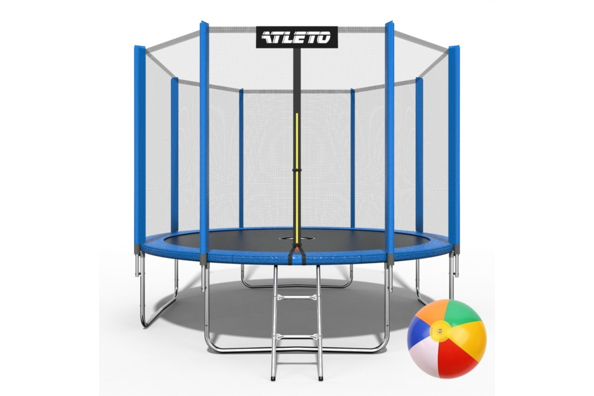 Батут Atleto 42400463 з зовнішньою сіткою 404 см синій + подарунок м'ячик та рукавиці виготовлений з високоякісних матеріалів, що забезпечує його довгий термін служби.