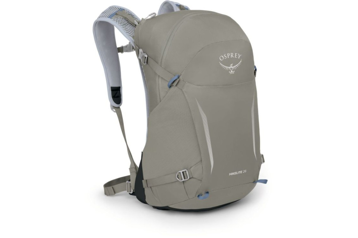 Прогулянковий рюкзак Hikelite 26 л вміщує все необхідне для нетривалого трекінгу та прогулянок у місті. Ви зможете помістити туди провізію, воду, карту та змінний одяг. Крім того, рюкзак має DWR покриття та рейнкавер. Є кишенька для питної системи гідратації об'ємом до 3 літрів. Osprey каже, що Hikelite 26 має (рекомендовану) вантажопідйомність від 2 до 11 кг. Він добре вентилюється на спині та плечах, щоб забезпечити вам комфорт під час напружених підйомів та у теплі дні. Оснащений стабілізуючою рамою LightWire , повітропроникною сітчастою спинкою і дихаючими плечовими ременями із сітки.