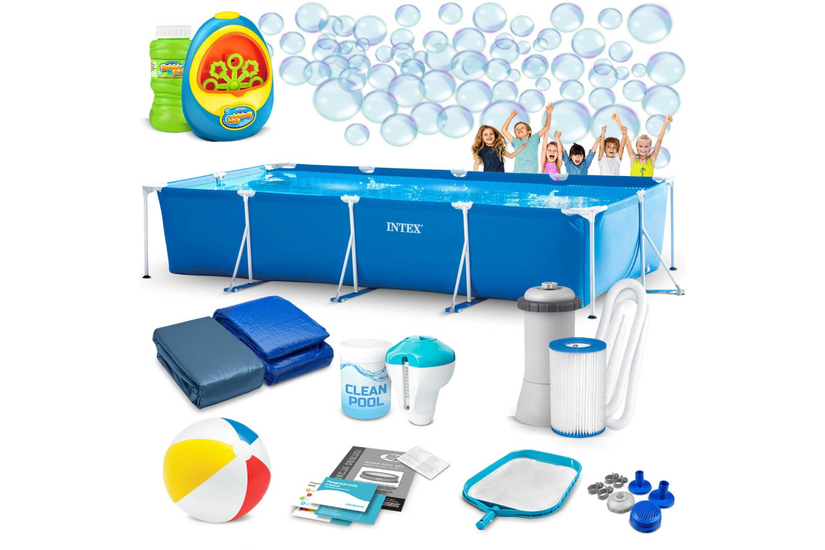 Басейн каркасний прямокутний 15в1 INTEX 28273, 450 x 220 x 84 см + машина для створення бульбашок
