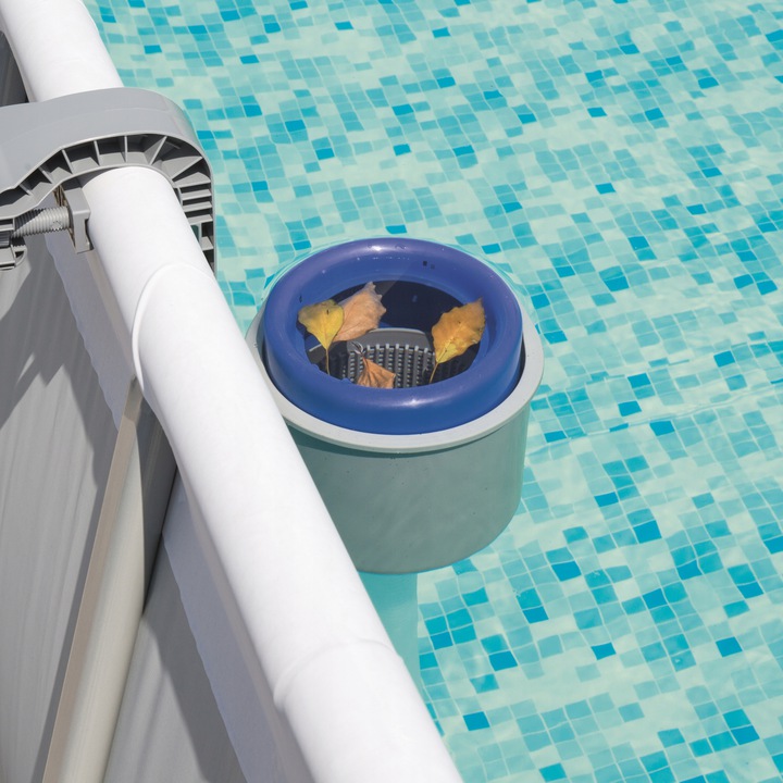 Поверхневий скімер встановлюється на стінах басейну для очищення верхнього шару води від плаваючого сміття та забруднень. Приєднується до всмоктуючого патрубка басейну й має корзину для уловлювання листя та інших об'єктів. Підходить для фільтраційних систем продуктивністю 3 м³/год й більше.