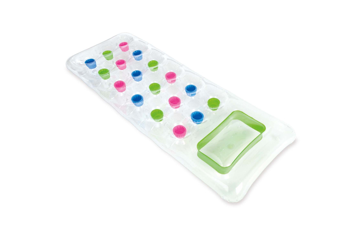 Яскравий матрац для плавання розміром 188 х 71 см розрахований на одну дорослу людину і має прозоре віконце, через яке можна спостерігати за тим, що відбувається під водою. Матрац також має вбудовану подушку, щоб ви могли зручно відкинутися і розслабитися.Надувний матрац для плавання забезпечить місце для відпочинку — ми бажаємо вам тільки гарної погоди.