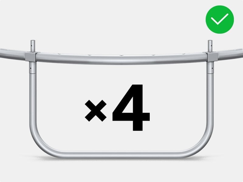 Батути ZIPRO мають збільшену кількість ніжок порівняно з іншими виробами. Таким чином, сили, що діють на конструкцію під час стрибків, краще розподіляються, а навантаження є рівномірним, що забезпечує стабільність і безпеку. Вони виготовлені, як і каркас, з атмосферостійкої оцинкованої сталі.