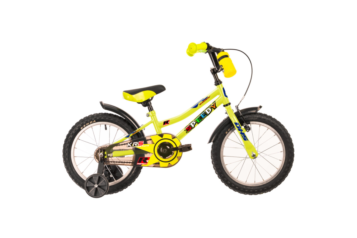 Дитячий велосипед DHS Speedy 1601 16” – 2022 підходить для дітей віком від 4 років і старше. Це сучасний дитячий велосипед із міцною сталевою рамою 8”, колесами 16” і надійними гальмами – V-brake на передньому колесі та каботажним гальмом ( торпедо) на заднє колесо. Цей велосипед має ряд функціональних і безпечних функцій, таких як захист ланцюга, дзвінок і відбивачі. Крім того, він також оснащений тренувальними колесами, що робить його ідеальним для новачків. Чудове співвідношення ціна/якість робить