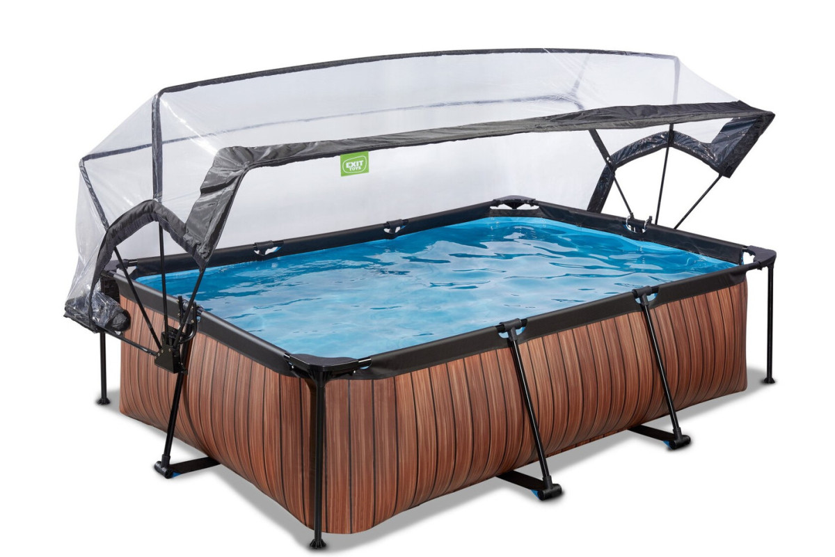 Басейн каркасний прямокутний EXIT з куполом 220х150х65 см в кольорі "дерево"