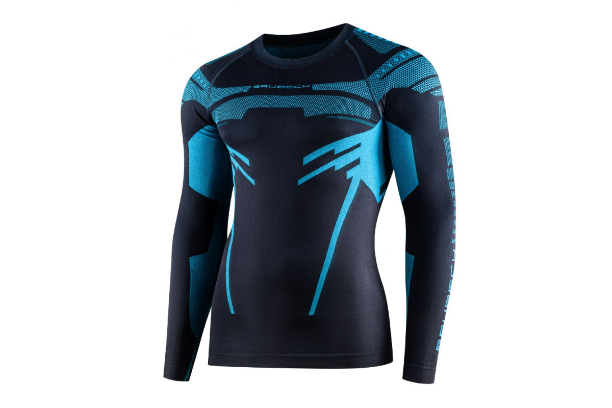 Високоякісна технологія 3D в'язання на сучасних машинах гарантує еластичність та ідеальне прилягання до форми тіла та захищає від тертя. Чоловіча футболка з довгими рукавами для активного одягу Bruback Dry забезпечує ергономічну посадку , а також відмінну повітропроникність і оптимальне кондиціонування повітря (завдяки відкритим зонам сітчастої структури).