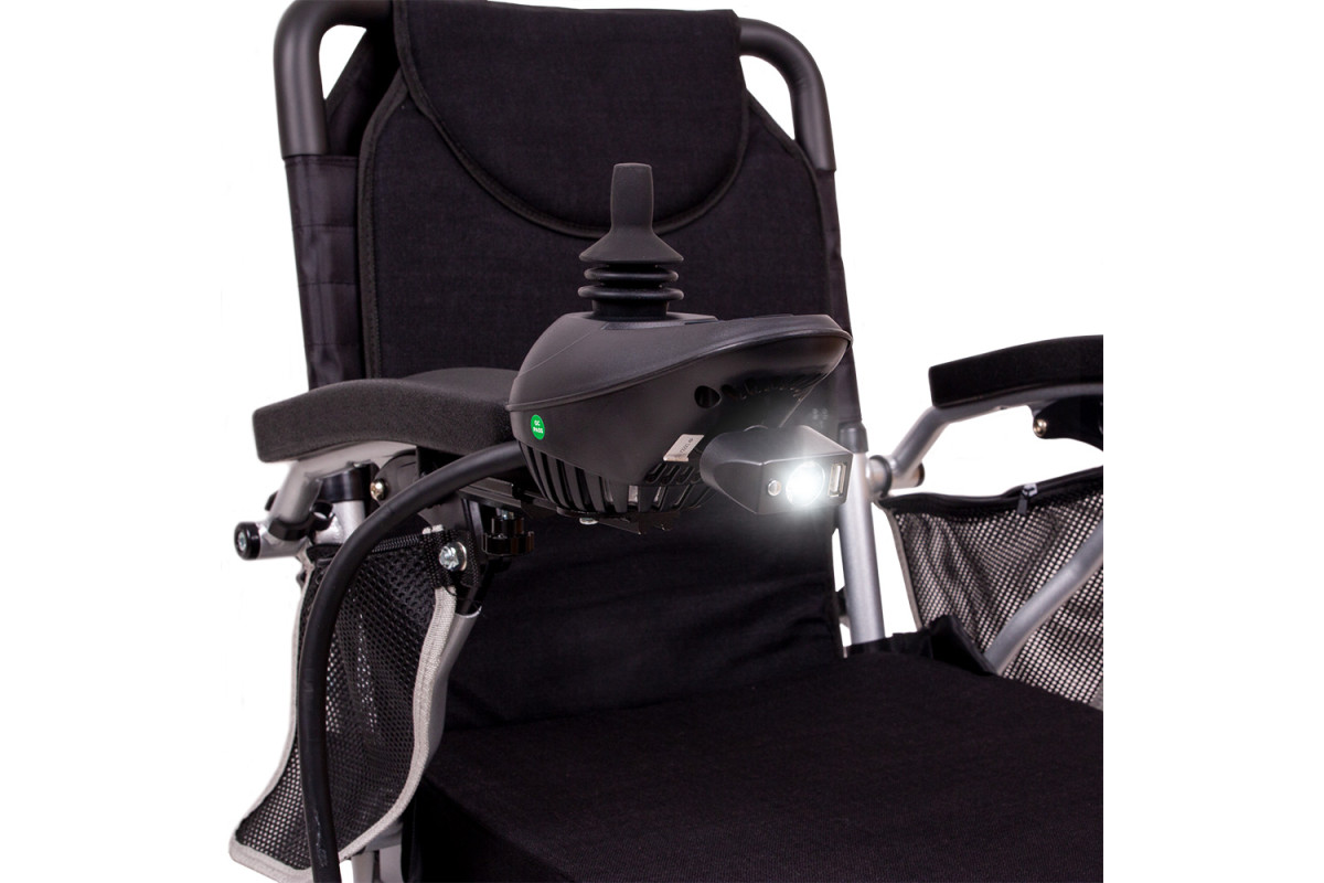 Все, що вам потрібно зробити, це вставити USB-концентратор зарядки в панель керування за допомогою джойстика, і все готово. Світло працює, навіть якщо інвалідний візок вимкнено.