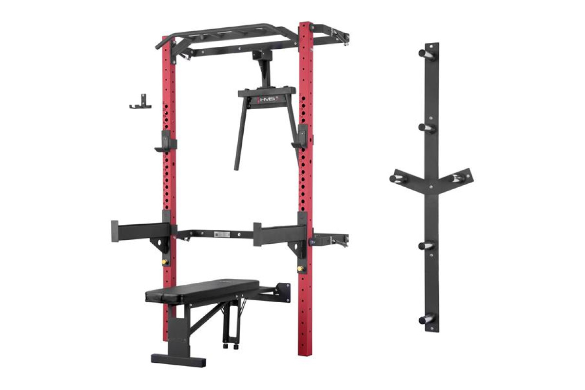 Складана силова рама з настінним монтажем KLT22 від HMS розроблена таким чином, щоб відповідати сучасним тенденціям ринку та виправдовувати очікування найвибагливіших клієнтів. Рама в цьому варіанті продається з додатковим обладнанням. Окрім турніка для підтягувань, страхувальних гаків для штанги та опор для безпеки, ви також знайдете складану плоску лаву, поручні-бруси, стійку для дисків та тримач для грифів. Цей набір розширить сферу тренувань і надасть нові можливості для зберігання вашого спорядження.