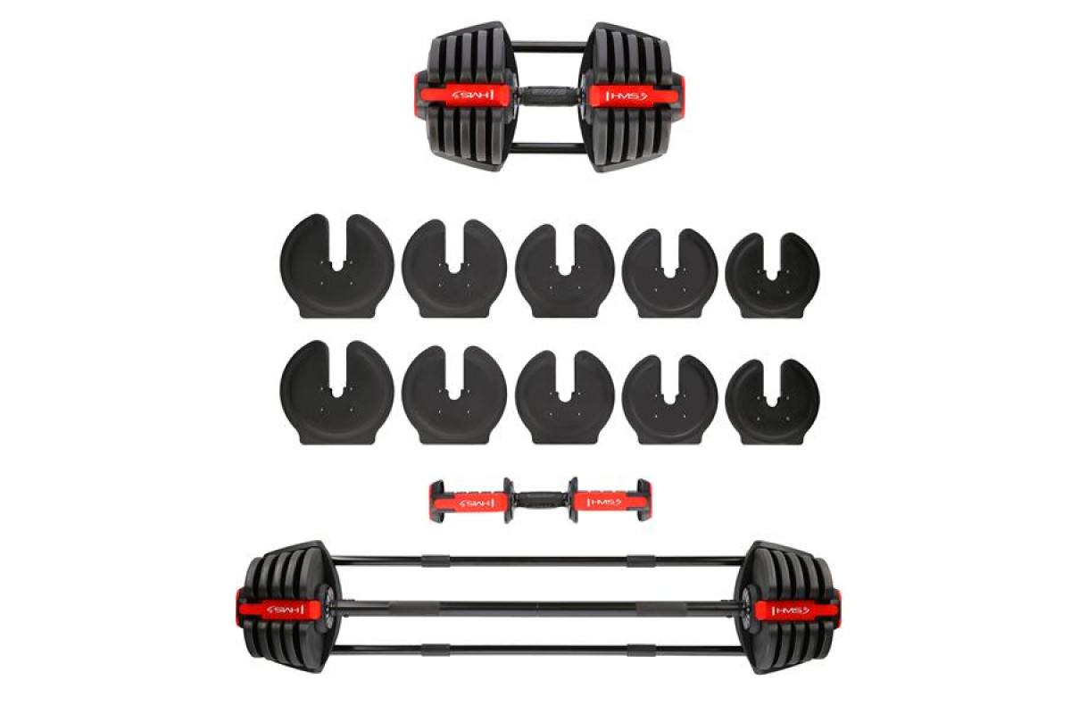 Гантелі SGR40 2-в-1 HMS - це інноваційна новинка, яка дозволяє виконувати різноманітні вправи в домашніх умовах. З одного набору ви створите штангу та гантелі. Штанги регулюються і можуть бути легко адаптовані до ваших потреб і здібностей. Висока якість та естетичність виробу задовольнять вимоги любителів фітнесу та силових тренувань. Ефективне тренування з SGR40 З SGR40 забудьте про важкі та компактні пластини, які потрібно постійно міняти та затягувати на грифі. З регульованими грифами SGR40 у вас є все необхідне для ефективних силових тренувань. З ними можна виконувати різноманітні вправи, підлаштовуючи навантаження під свій тренувальний план. Обладнання легко збирати та зберігати, тому воно не займає багато місця. Регульована зміна навантаження Штанги SGR40 дуже прості у використанні. Все, що вам потрібно зробити, це розмістити їх на спеціальній підставці та за допомогою ручки відрегулювати відповідне навантаження. На штанзі залишаться тільки пластини, що відповідають обраній вазі в кілограмах і фунтах. Штанги SGR40 мають ергономічну форму і нековзну ручку для комфорту і стійкості. З одного набору можна створити наступне обладнання: Штанга: Тренування зі штангою - один з найефективніших способів нарощування м'язової маси і сили. Штанга дозволяє піднімати значні ваги, що стимулює ріст і розвиток м'язів. Тренування зі штангою задіює багато частин м'язів, що позитивно впливає на поставу, стабільність і працездатність. Тренування зі штангою також збільшує спалювання калорій і жиру. У цьому варіанті навантаження можна варіювати від 2,5 до 41 кг. Гантелі: Тренування з однією гантеллю забезпечує більшу свободу рухів і кращу стабілізацію тіла. Ви можете виконувати вправи в різних площинах і напрямках, що залучає більше м'язів і покращує координацію. Ви можете використовувати гантелі для тренування різних частин тіла, таких як груди, спина, плечі, руки, живіт, ноги або сідниці. Вам не потрібно багато гантелей з різною вагою, вам потрібна лише одна, яку ви можете адаптувати до свого рівня та мети. Варіюйте вагу гантелі від 2 до 40 кг і адаптуйте її до своїх потреб. Висока якість та сучасний дизайн SGR40 поєднує в собі функціональність, якість та естетику. Тренажер виготовлений з міцних і довговічних матеріалів, які забезпечують комфорт і безпеку під час тренування. Завдяки чорно-червоному кольору та лаконічному дизайну тренажер має привабливий зовнішній вигляд. Пластини всередині наповнені сталлю, що безпосередньо впливає на їхню якість та довговічність. Штанги HMS 2-в-1 - це продукт, який виправдає очікування кожного ентузіаста фітнесу та силових тренувань. Специфікація: Матеріал: Сталь, поліпропілен, нейлон, ABS, алюміній Регулювання навантаження: Так Загальна вага (з підставками): 43,5 KGS Диски: 2,66 кг х 2 шт. 3,6 кг х 2 шт. 3,97 кг х 2 шт. 4,3 кг х 2 шт. 4,9 кг х 2 шт. Штанга Регулювання навантаження: 2,5 - 41 кг Розміри в стійці: Довжина: 118 см Висота: 24 см Ширина: 27 см Довжина секції грифа: 10 см Гантелі Регулювання навантаження: 2 - 40 кг Розміри в підставці: Довжина: 46,5 см Висота: 24 см Ширина: 27 см Довжина грифа: 9 см Одинарна стійка Розміри: Довжина: 17 см Ширина: 27 см Висота: 10,5 см Примітки: Не для комерційного використання Гарантія 24 місяці