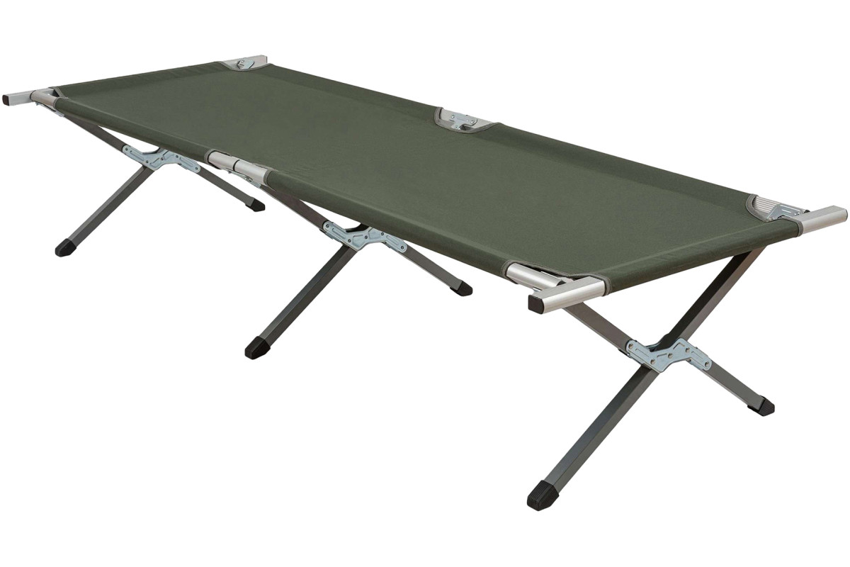 Highlander Aluminium Camp Bed Green (FUR041-GN) - міцне алюмінієве ліжко для комфортного відпочинку в кемпінгу. Ця модель має міцні посилені ніжки, що забезпечують хорошу стійкість під час нічного сну. Це чудовий варіант для тих, хто не хоче спати в наметі на одному рівні із землею. Крім того, ліжко забезпечить додаткове спальне місце для гостей у заміському будинку або на дачі.