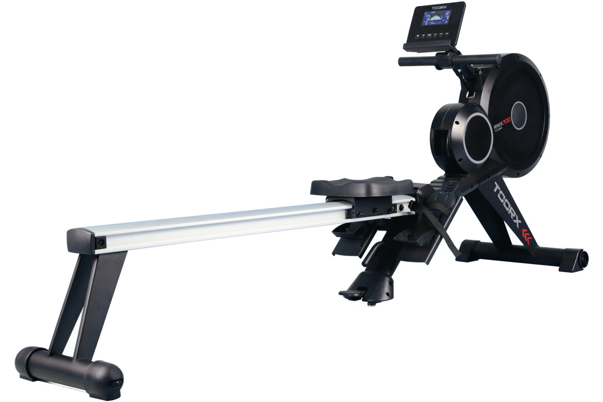 Веслувальний тренажер Toorx Rower RWX 700 (RWX-700) від італійського виробника Garlando SpA призначений для комплексного кардіотренування в домашніх умовах. Тренажер має 16 рівнів навантаження, що регулюються за допомогою сучасного комп'ютера. 9-кілограмовий маховик завдяки магнітній системі гальмування забезпечує оптимальну амплітуду рухів, а повітряна система опору імітує відчуття веслування на воді. Веслувальний тренажер розрахований на вагу до 150 кг, а його сидіння на роликах ковзає по алюмінієвій напрямній, гарантуючи необхідний комфорт навіть за тривалого тренування. Вбудований приймач для бездротового датчика вимірювання пульсу буде доречним під час тренування для контролю частоти серцевих скорочень. Складана конструкція тренажера заощаджує місце та дозволяє розмістити його навіть на мінімальній площі, яка потрібна для зайняття спортом.