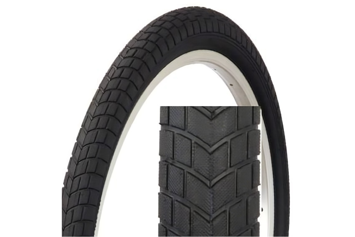Шина ZY-032 для дитячих велосипедів з діаметром коліс 20". Завдяки використанню спрямованого протектора шина забезпечує кращий контроль напрямку руху, що важливо при подоланні складних маршрутів. Дротова структура гарантує підвищену міцність і довговічність використання терміну